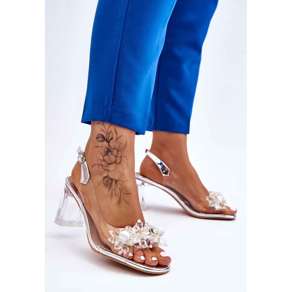 S. Barski Carmelo - Fashionabla transparenta sandaler med dekorationer, silver