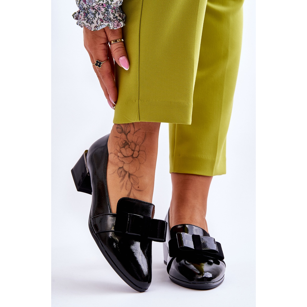 Detaljer: Vinceza Fashionabla lackläderpumpar med dekorativ rosett Shira Black svart