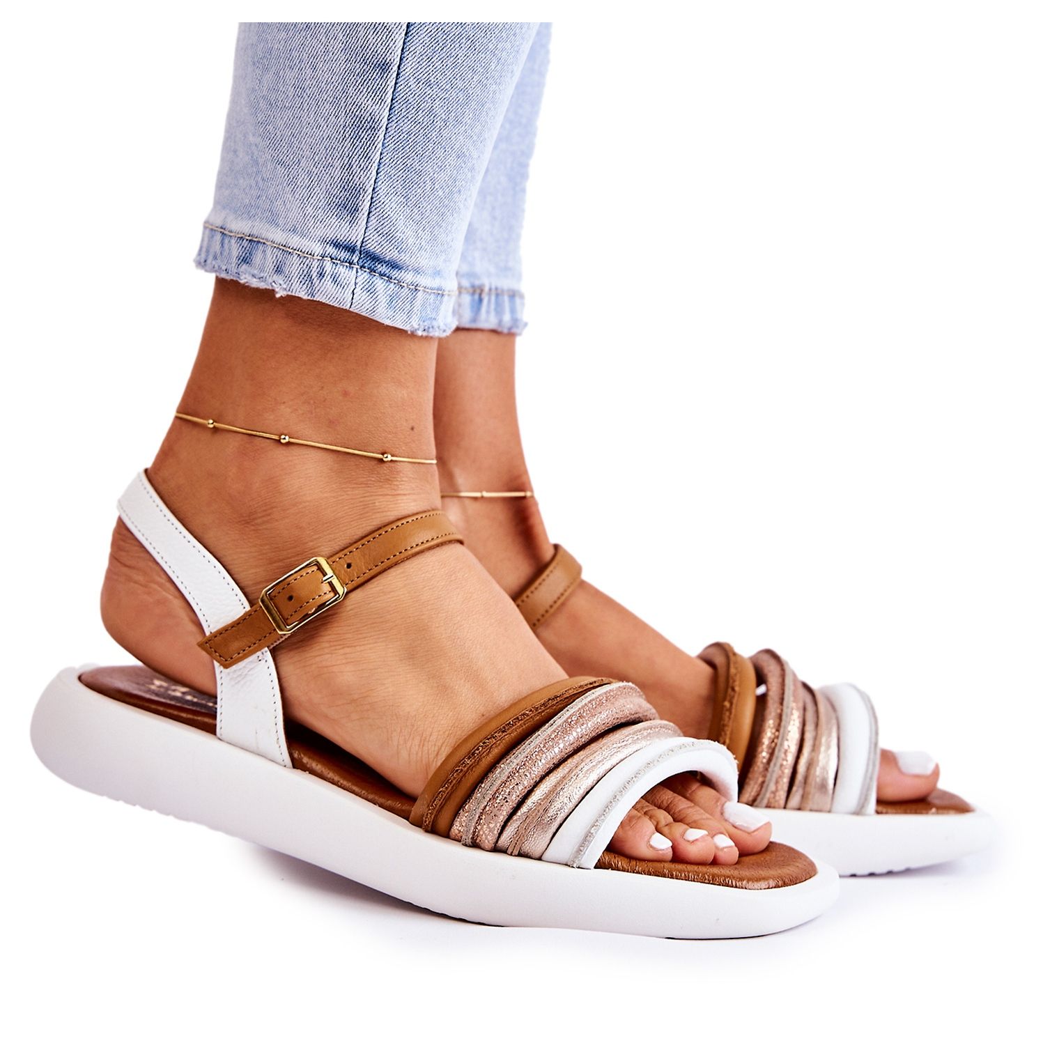 Detaljer: Fashionabla lädersandaler för kvinnor Maciejka 05561-11 Vit mångfärgad