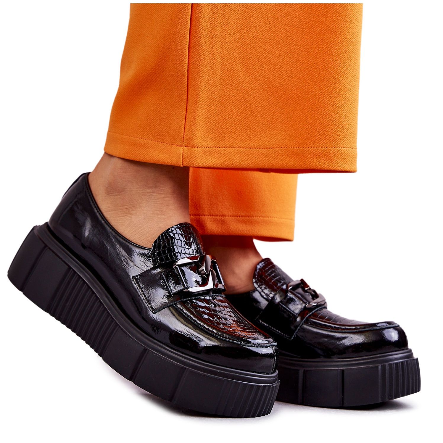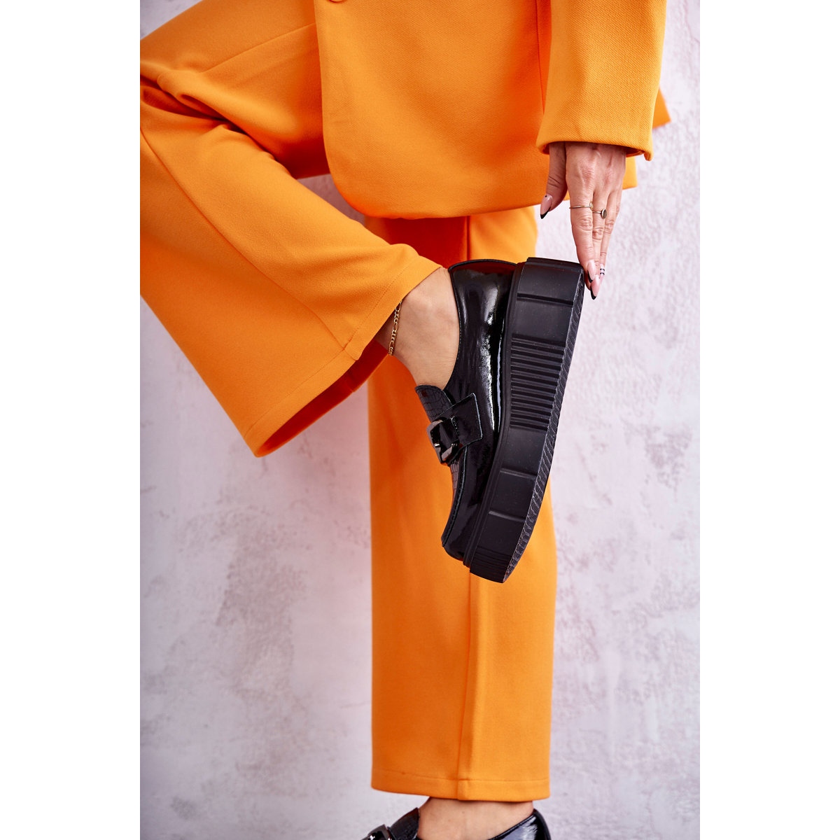 Detaljer: PL5 Fashionabla läderskor på Black Marsol-plattformen svart