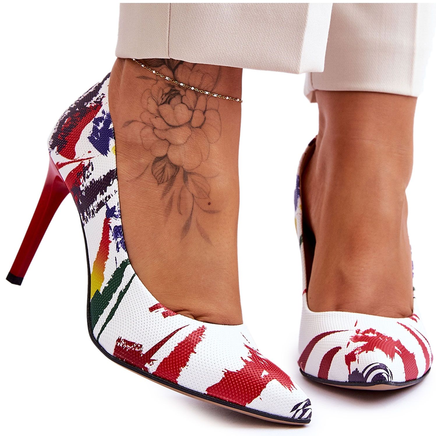 Fashionabla högklackade läderskor Lewski Shoes 2659 i en vit och röd utgåva är ett förslag som kommer att glädja även de mest krävande älskare av elegans. Dessa snygga pumps med en smal stilettklack är en garanti för en attraktiv siluett och självförtroende. De är gjorda av högkvalitativt naturligt läder och kombinerar bärkomfort med moderiktig design.