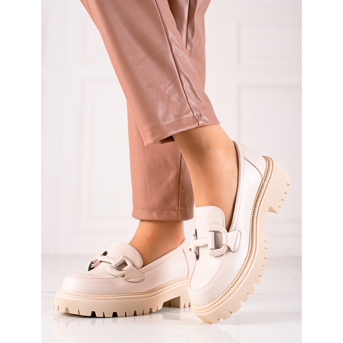 Seastar loafers på plattformen är ett idealiskt förslag för kvinnor som värdesätter komfort och en moderiktig look i vardagliga outfits. I beige färg kommer dessa eleganta skor att vara ett perfekt komplement till många stilar, både varje dag och för speciella tillfällen.