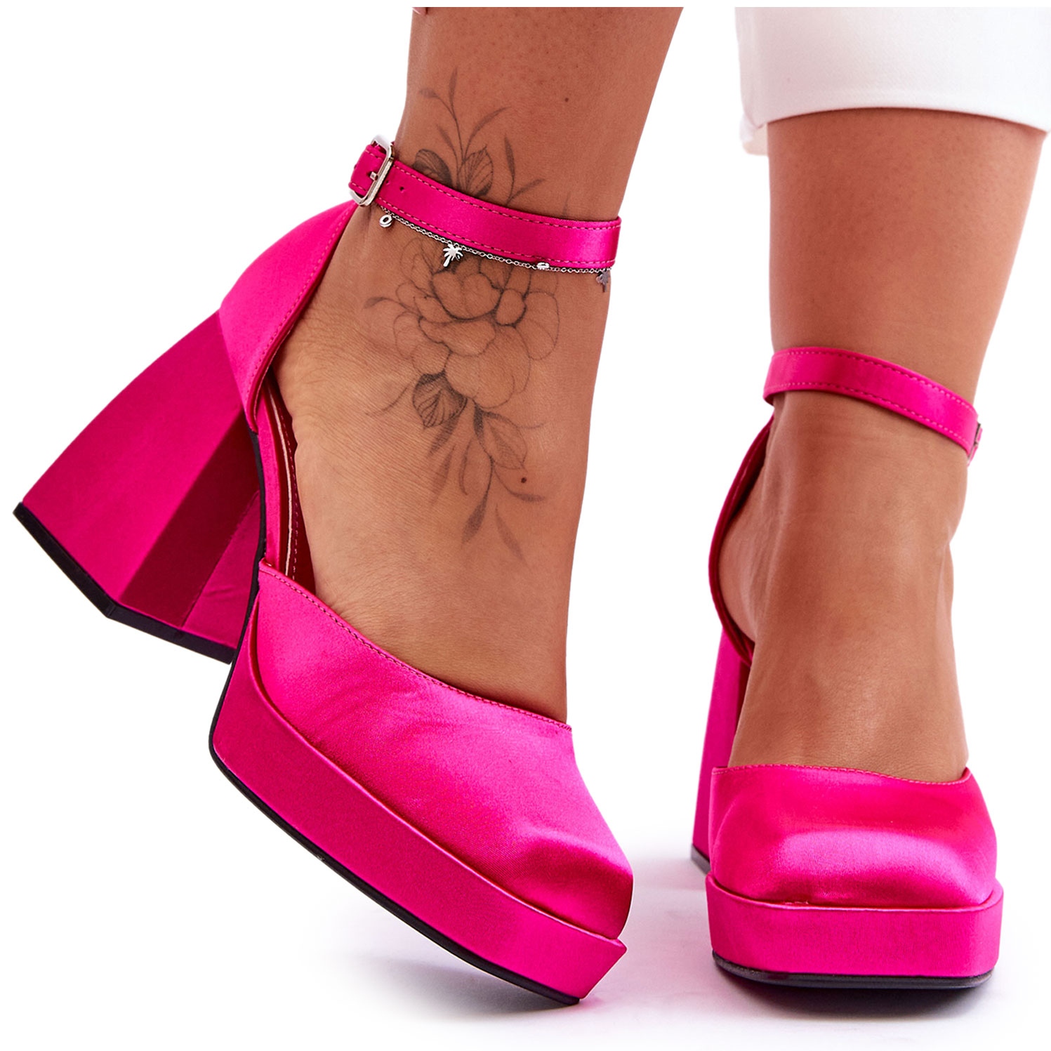 Pumparnas unika karaktär framhävs av deras rika, rosa färg, som passar säsongens trender och tillför charm till varje styling. Dessa skor är monterade på en stabil plattform och en massiv blockklack med en höjd på 9,5 cm, vilket garanterar inte bara ett imponerande utseende, utan också komfort när du går. Dessa pumps är gjorda av högkvalitativt textilmaterial och är inte bara iögonfallande utan lovar också hållbarhet och motståndskraft mot dagligt bruk.
