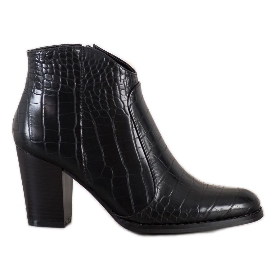 Stövlarna knäpps med dragkedja vilket gör dem lätta att ta av och på. En hög klack på 8 cm, i kombination med en rund tå, ger klass och säkerställer samtidigt komforten att bära. Den släta plastsulan gör skorna stabila och lätta att underhålla.