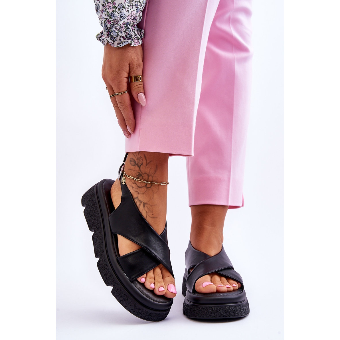 Detaljer: PE1 Fashionabla svarta Chester Platform-sandaler