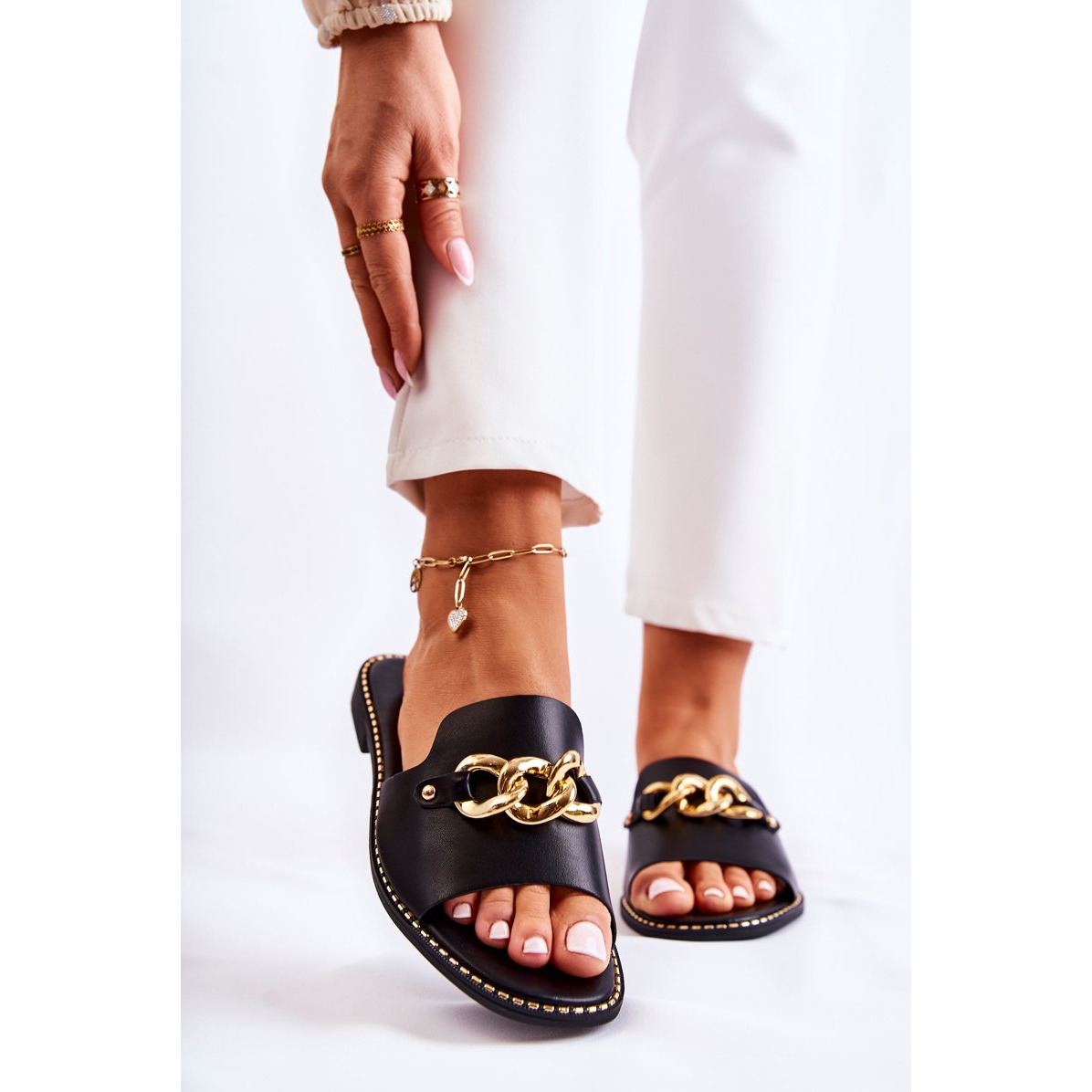 Detaljer: S.Barski Fashionabla Svarta Finess Tofflor Med En Kedja På En Platt Klack
