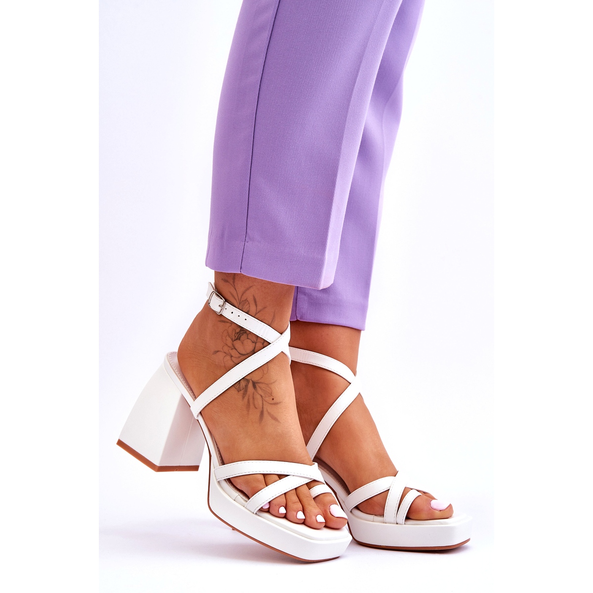Fashionabla White Secret Rose högklackade sandaler och platåsandaler är det perfekta valet för varje fashionabel kvinna som vill kombinera elegans med komfort. Dessa sandaler är gjorda av högkvalitativt ekologiskt läder och är det perfekta komplementet till många sommarstilar. Deras minimalistiska, vita färg gör dem extremt universella och passar både vardagliga och mer formella outfits.