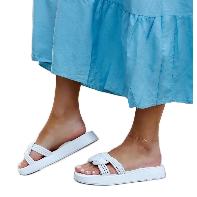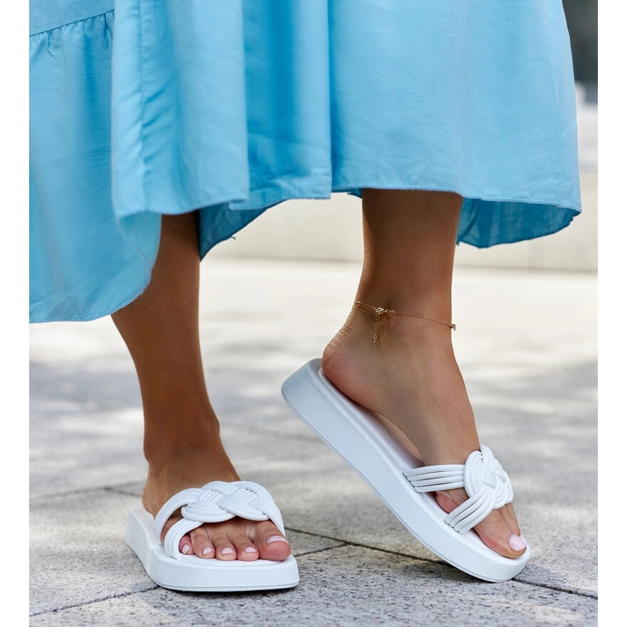 CM-49-modellen kännetecknas av en glidande lås, vilket gör det lättare att ta på sig. Den 3 cm höga plattformen säkerställer komforten att bära hela dagen, och den vita färgen på sulan passar perfekt in i de senaste modetrenderna. Ferrei Flip Flops är en del av sommarsamlingen och kommer säkert att bli ett favoritelement i varje kvinnas garderob.