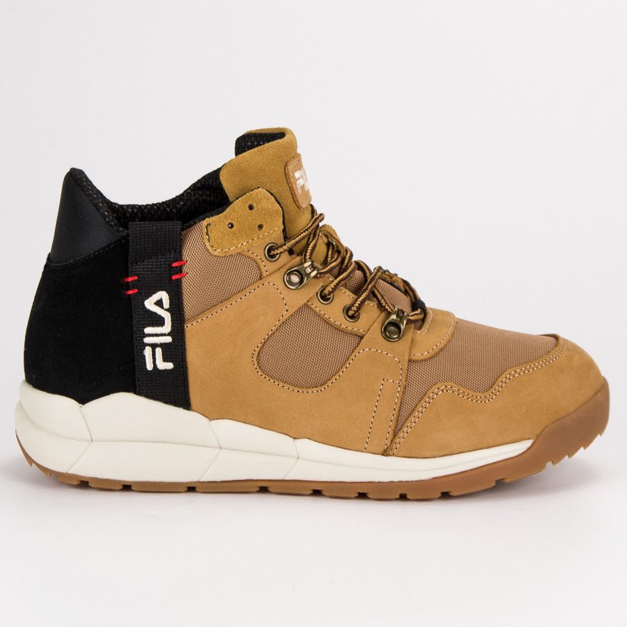 Fila Norton Mid - herrskor i nyanser av brunt och beige, som kombinerar en sportig karaktär med vardagskomfort. Tillverkad av ekologiskt läder och textilmaterial, med textilinlägg och snörning för en säker passform. Plastsulan med slitbana ger bra grepp, och den styvade hälen stabiliserar foten. Neutrala, enhetliga färger gör modellen till ett perfekt komplement till casual och sportiga stilar året runt.