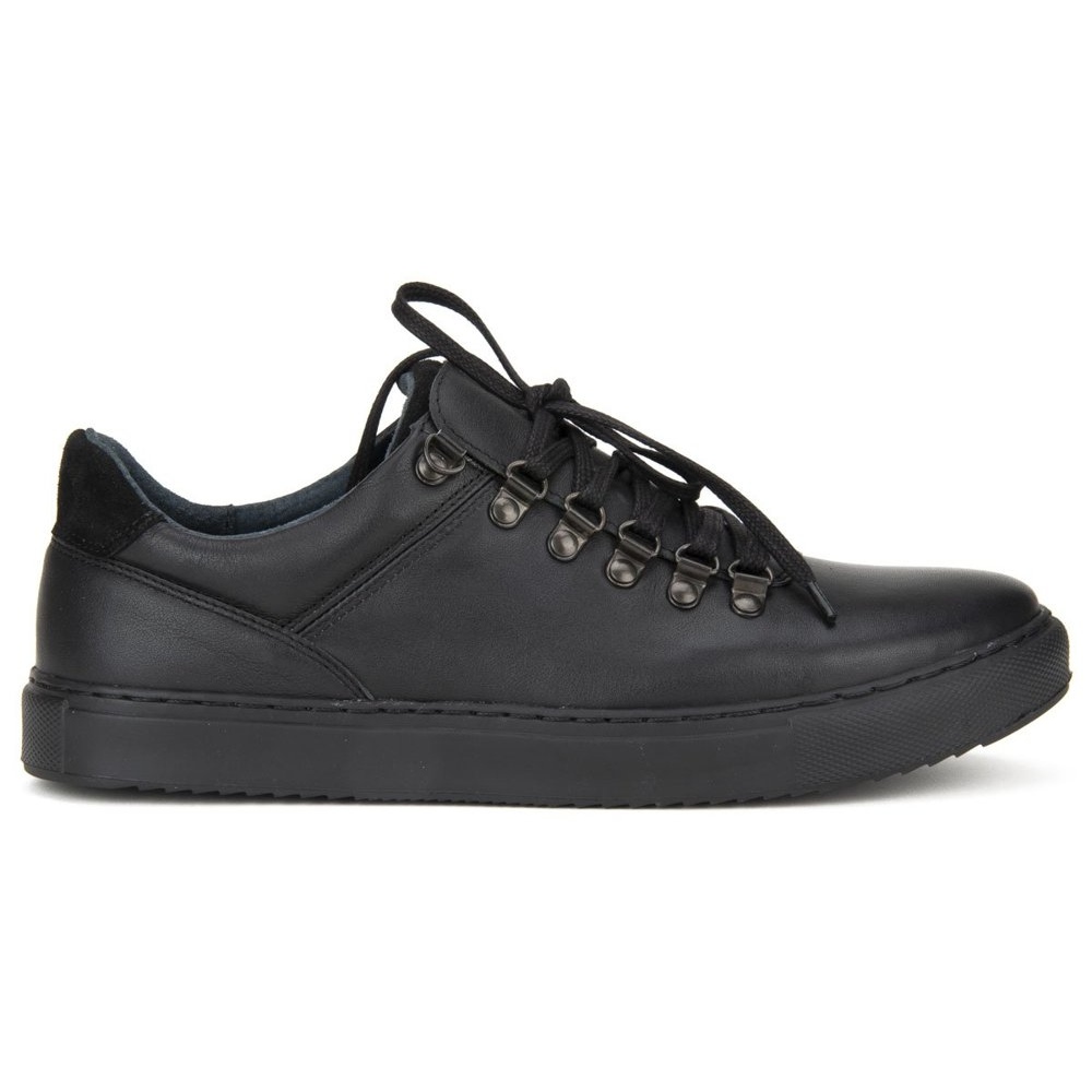 Dessa svarta skor kännetecknas av en rund tå och ett spetsfäste, vilket garanterar en bekväm passform på foten. Insidan av skorna är även klädd med naturligt läder, vilket säkerställer komfort och andningsförmåga, även när de bärs under lång tid. Sulan av plast är inte bara slitstark, utan också lätt vilket gör den bekväm att använda.