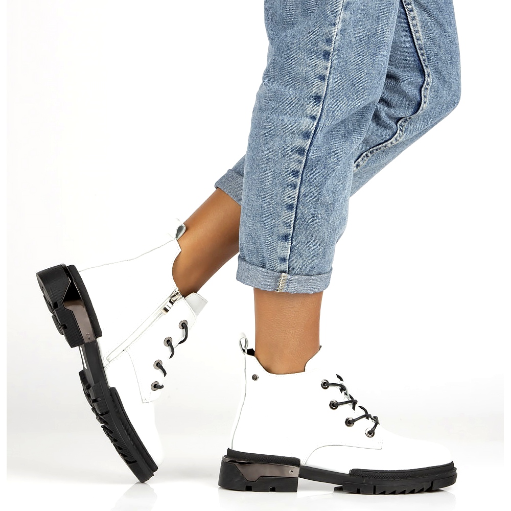 Snygga, lackerade filippo DBT4173 stövlar i en klassisk vit färg kombinerar en elegant look med en noggrann finish. Tillverkad av naturligt lackerat läder, isolerat med en trevlig, kort päls inuti, de ger värme och komfort under svalare dagar. Plant häl med en höjd av 3,5 cm och en rundad näsgaranti och komfort att bära hela dagen. Dragkedjan och snörningsfästelementet underlättar passformen på den övre, och den subtila logotypen på sidan lägger till stil.