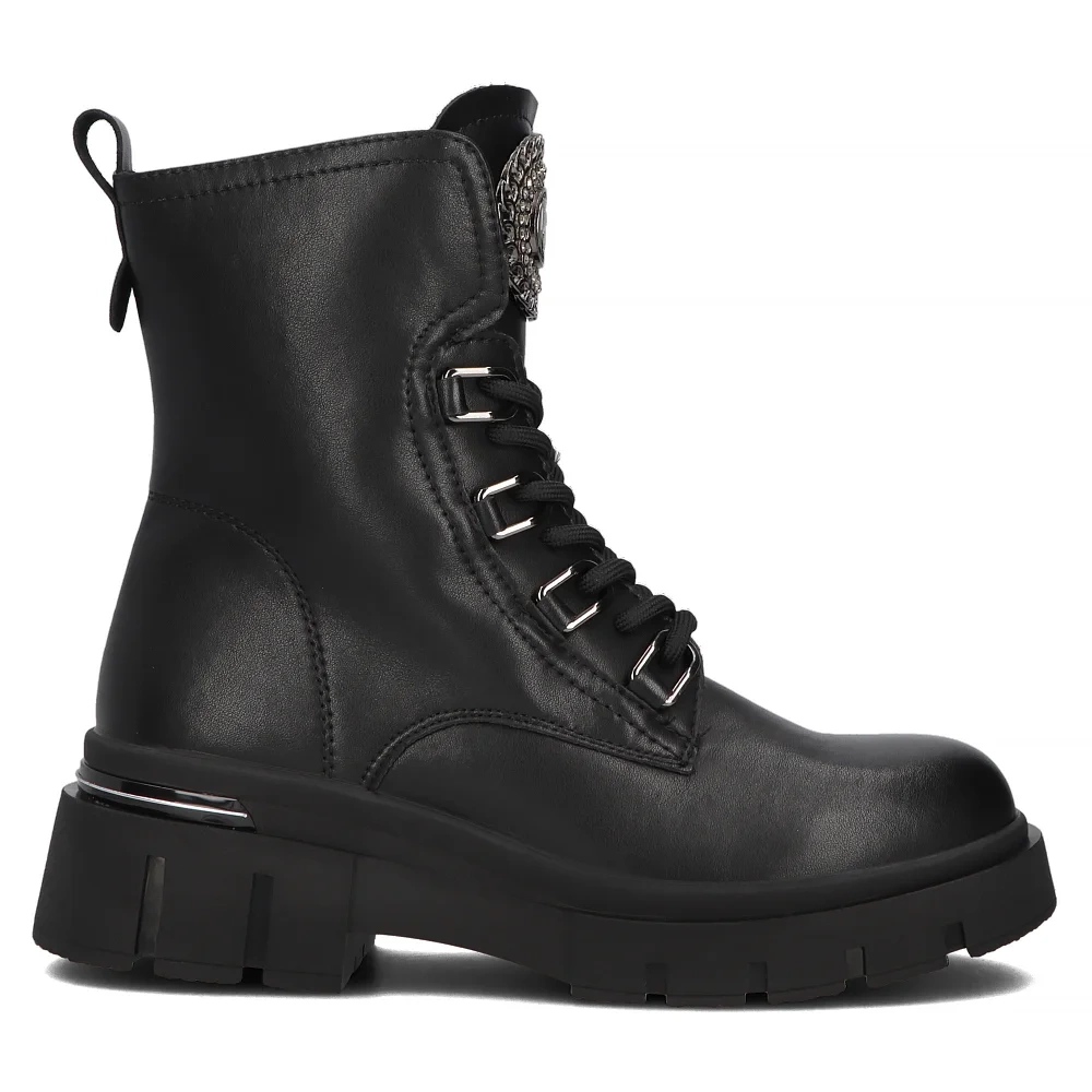 Karakteriserad av praktisk spets -upp lås, stövlar anpassar sig effektivt till foten och säkerställer den bästa stabiliteten under varje steg. Höjden på den övre av 15 cm och en 6 cm hög plattform gör denna modell extremt fashionabel och lyfts optiskt förlänger benen, medan den erbjuder komfort under dagen.