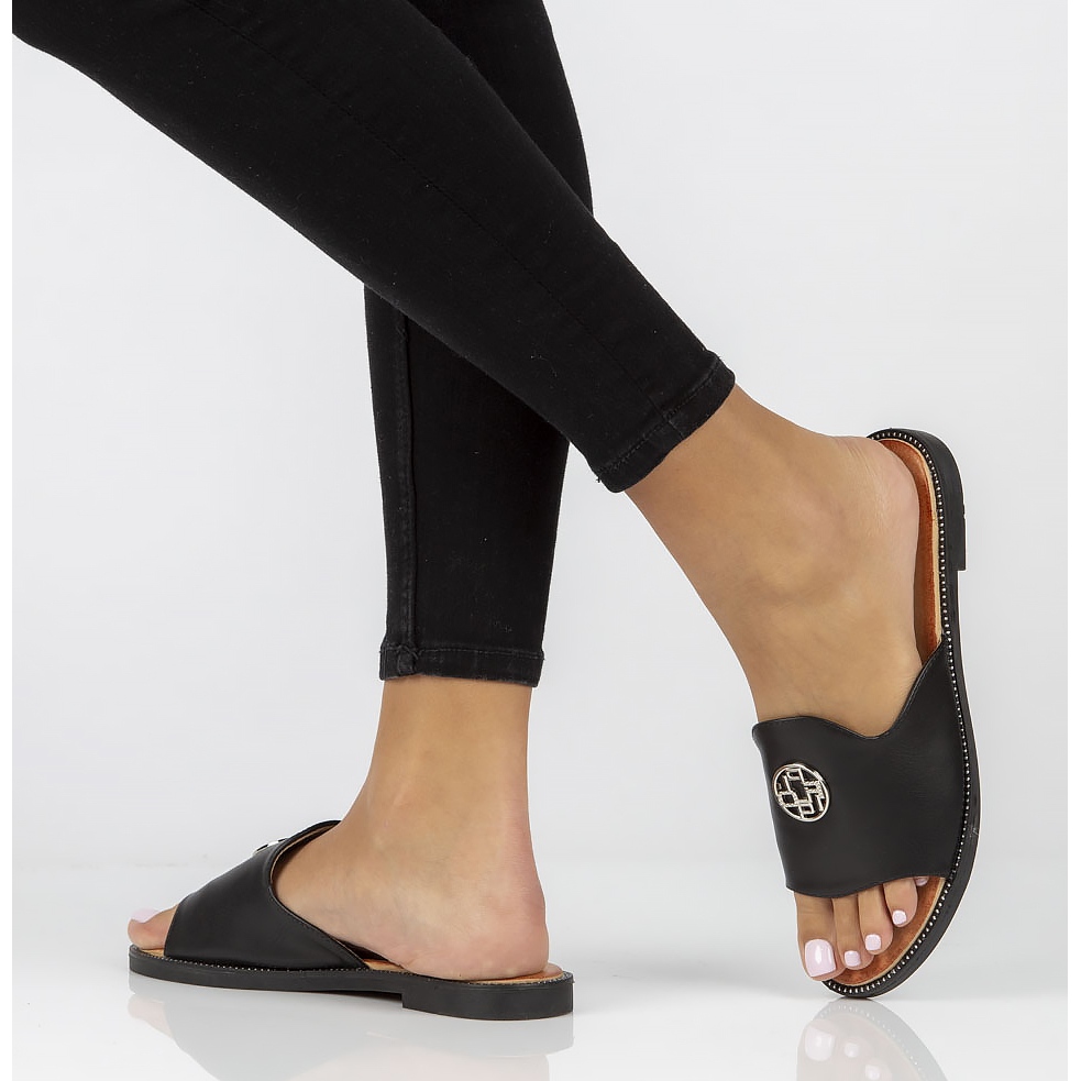 Flipflopsna har en platt klack på 2 cm, vilket gör dem till ett idealiskt val för casual set. Tack vare den raka, runda tån och lätta syntetsulan kan du njuta av stabilitet och komfort vid varje steg. Deras universella svarta färg gör att de matchar många stilar – både vardagliga outfits och lite mer eleganta kombinationer.