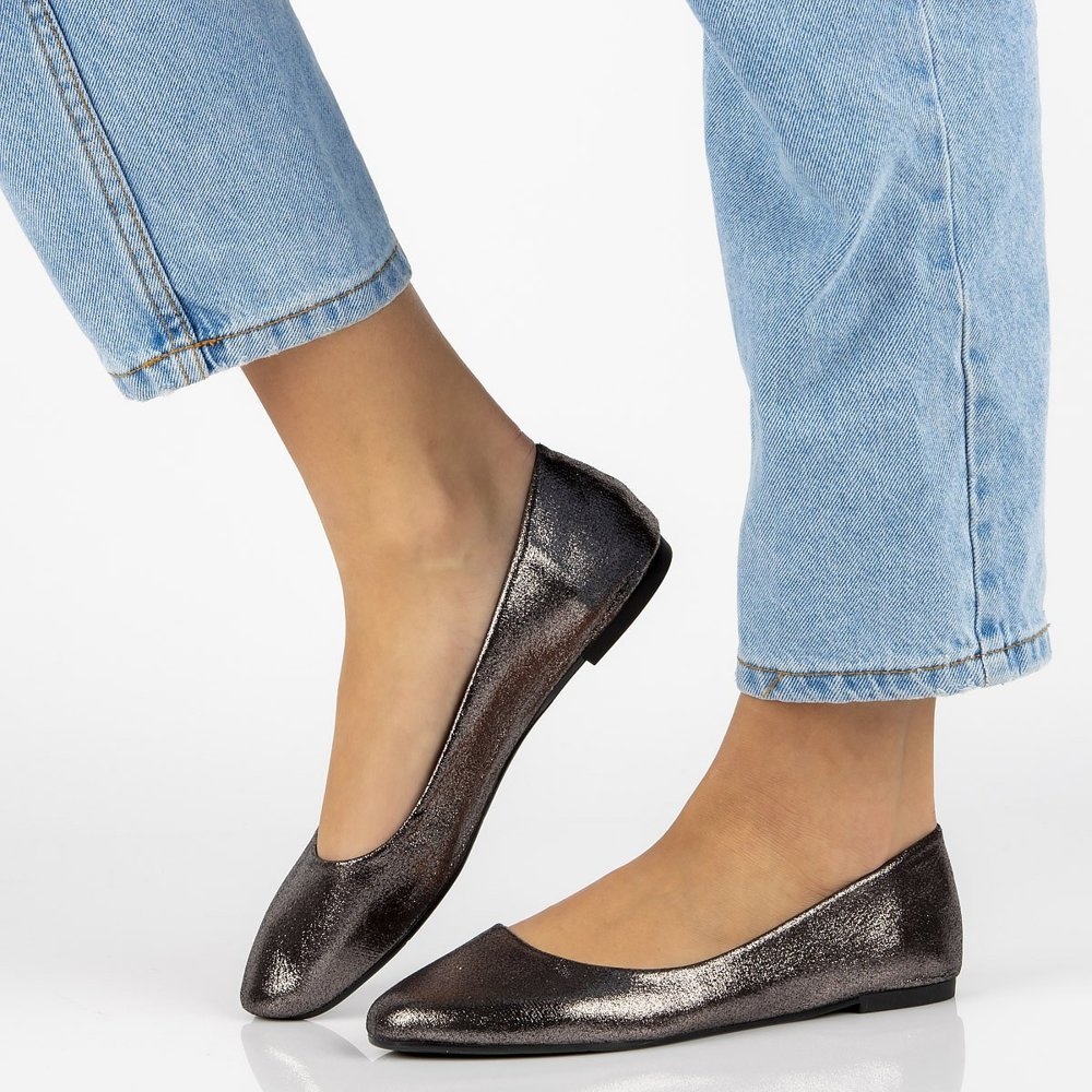Trots den minimalistiska designen kännetecknas dessa grafitbalettlägenheter av metalliska accenter som lägger till chic. Den runda tån och 5,5 cm höga skaftet säkerställer en perfekt passform och G-bredden gör att skorna passar de flesta kvinnor.