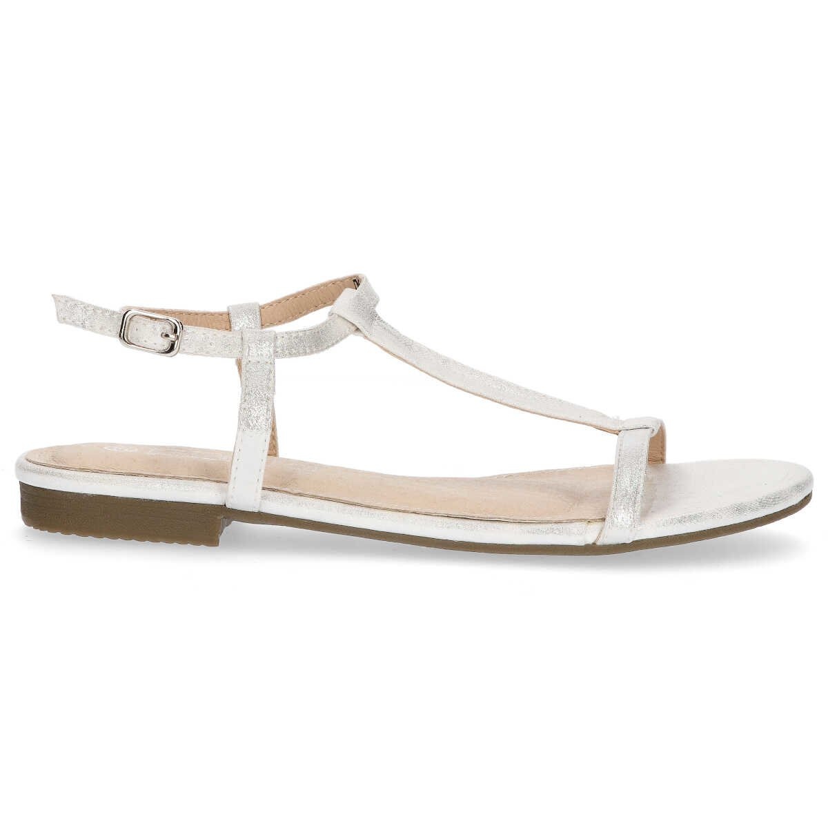 Denna modell kännetecknas av ett mjukt inlägg av naturligt läder, vilket säkerställer komfort under långvarig användning. En platt klack med en höjd på 2 cm och en plattform på 1 cm garanterar stabilitet och komfort, och bredden G gör att sandalerna sitter perfekt på foten. Den runda tån och spännet ger sandalerna charm och funktionalitet.
