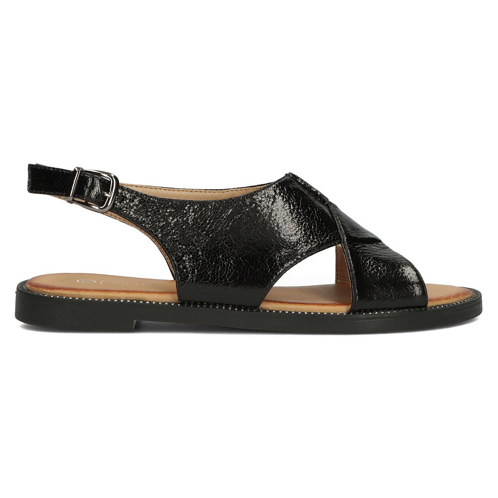 Modellen är utrustad med en rund tå och ett spänne, vilket ger en klassisk look. Sandalerna är gjorda av ekologiskt ytterläder och säkerställer hållbarhet och enkel skötsel, och den naturliga lädersulan säkerställer komfort även när den bärs under långa perioder.