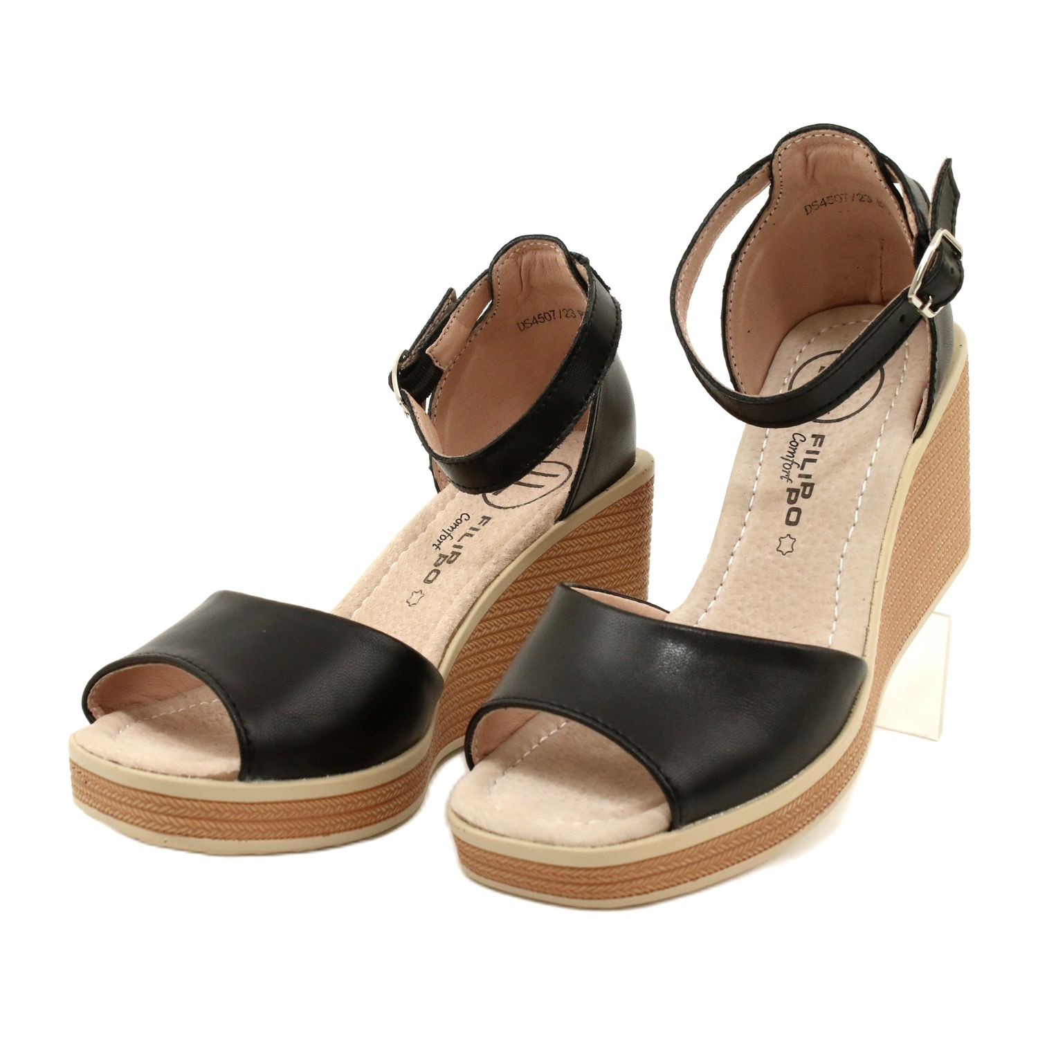 Detaljer: Filippo DS4507 BK Läder Wedge Sandaler Svart