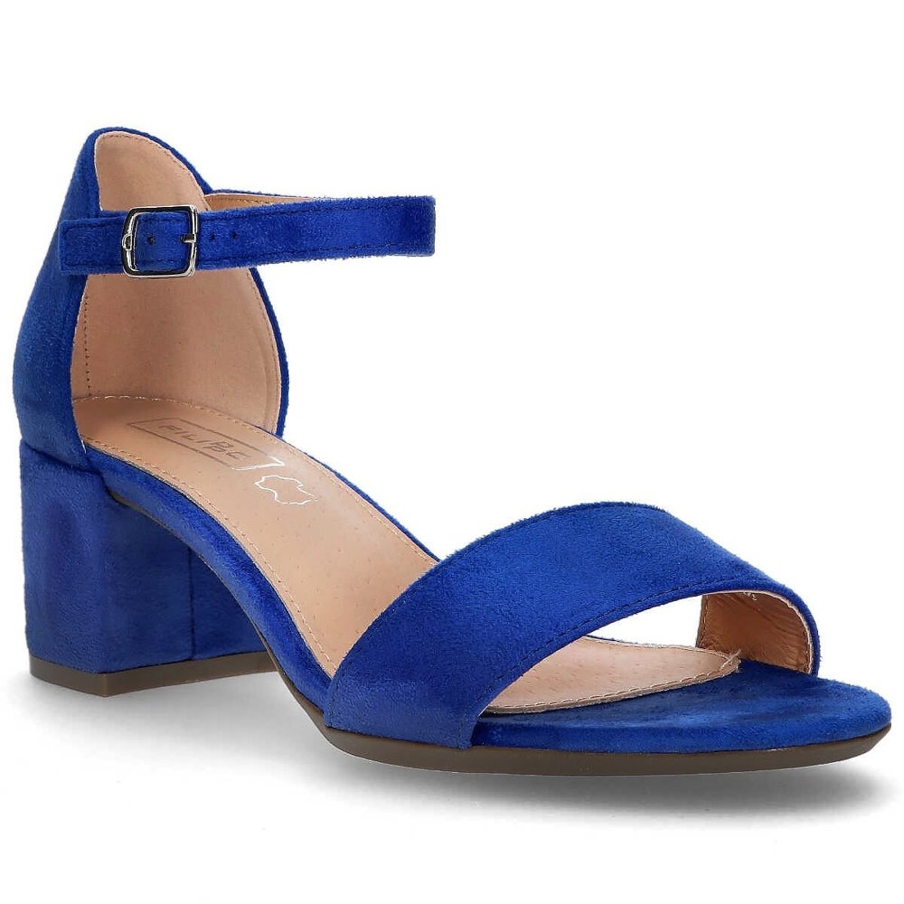 Denna modell kännetecknas av ett ekologiskt läderfoder och en naturlig innersula, som säkerställer komfort när den bärs. Den klassiska ovandelen med en höjd på 7,5 cm och en blockklack med en höjd på 5,5 cm tillför elegans och samtidigt stabilitet under gång. Bredden G gör att sandalerna sitter perfekt på foten.