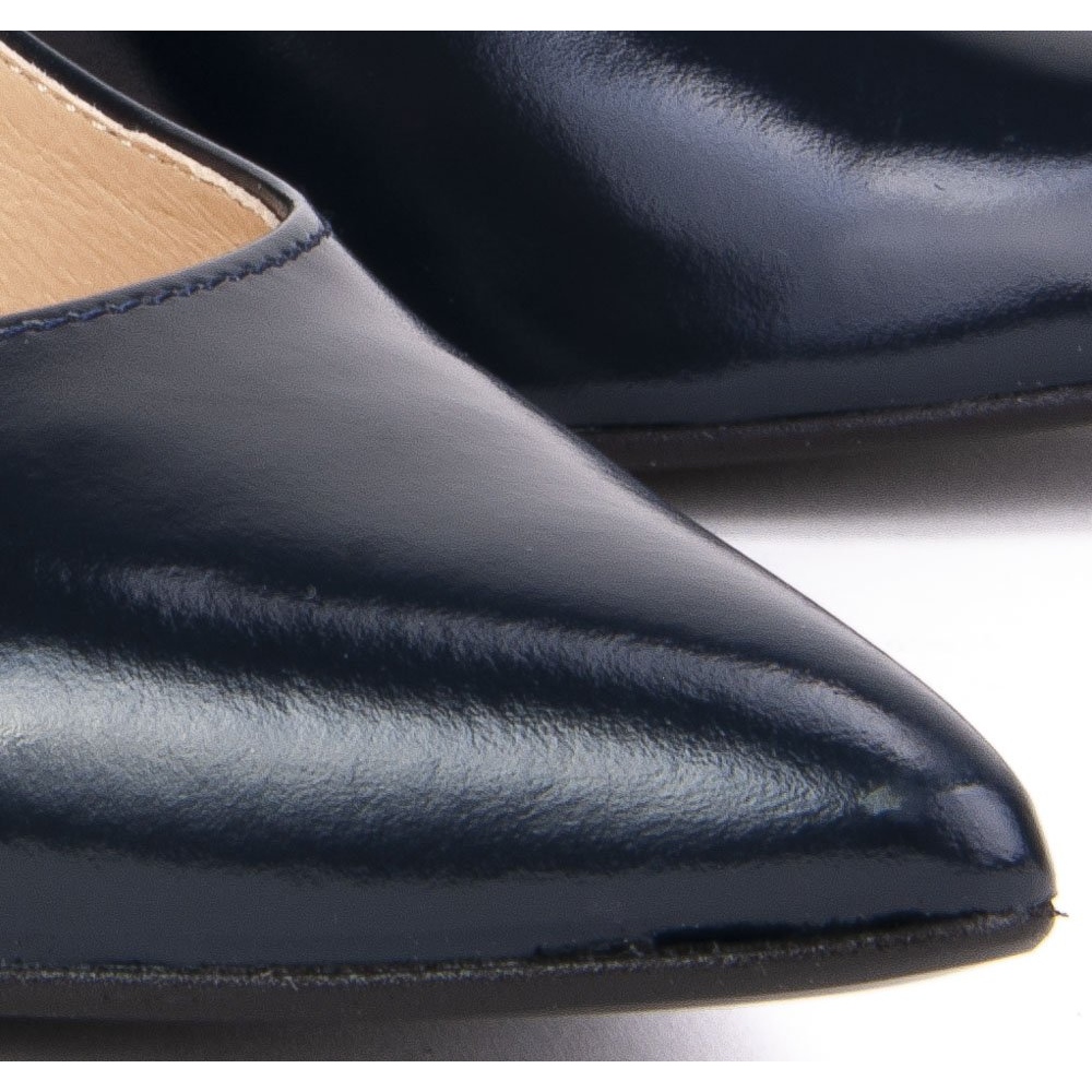 Med en klackhöjd på 8,5 cm ger dessa klackar klass och förlänger silhuetten, samtidigt som de erbjuder stabilitet när du går. Den spetsformade tån ger dem en smal look, och den marinblå färgen gör dem lätta att kombinera med en mängd olika kläder. Insidan av skorna är också fodrad med naturligt läder, vilket översätts till komfort och hållbarhet.