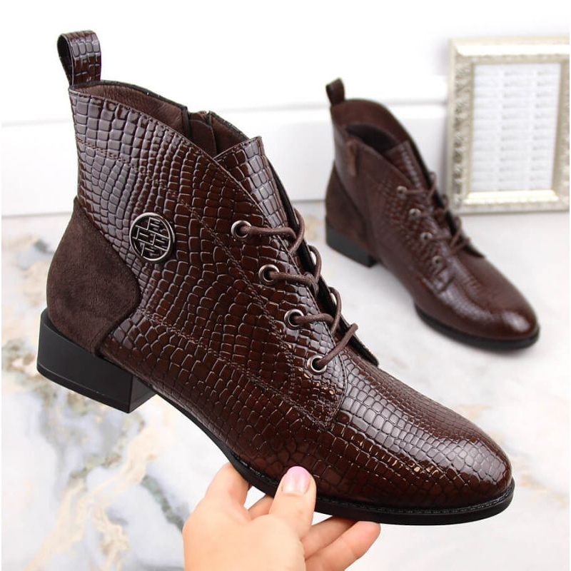 Stiliga, bekväma och isolerade - lackerade filippo -stövlar i PAW478B är ett förslag för kvinnor som letar efter fashionabla och praktiska skor på svalare dagar. Den övre med "Krok" -strukturen i en blank finish ger karaktär, och dämpade bruna färger kombineras enkelt med både avslappnade och mer eleganta stiliseringar.