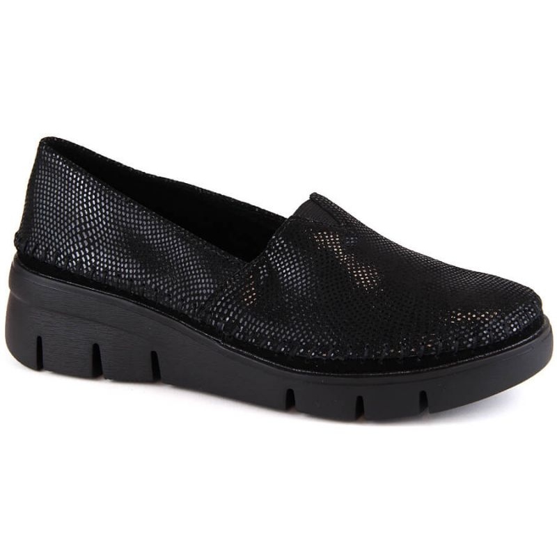 Tack vare den 5 cm höga hälen lägger dessa skor till klasser utan att ge upp bekvämligheten. Universella svarta färger gör dem lätta att kombinera med olika stilar - från avslappnad till mer eleganta.