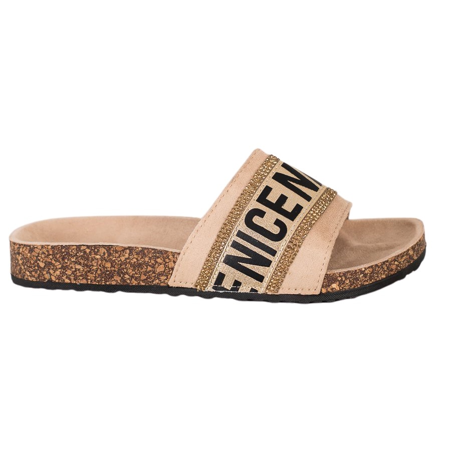 Elegant och bekväma kvinnors evento trevliga flip -flops är ett idealiskt förslag för våren och sommarsäsongen. Modellen kombinerar en avslappnad karaktär med fashionabla tillbehör - glänsande kristaller och strass och ett dekorativt tryck med undertexter ger dem uttrycksfullhet, och neutral beige blandar sig väl med sommarstyliseringar. Finns också i Brown.