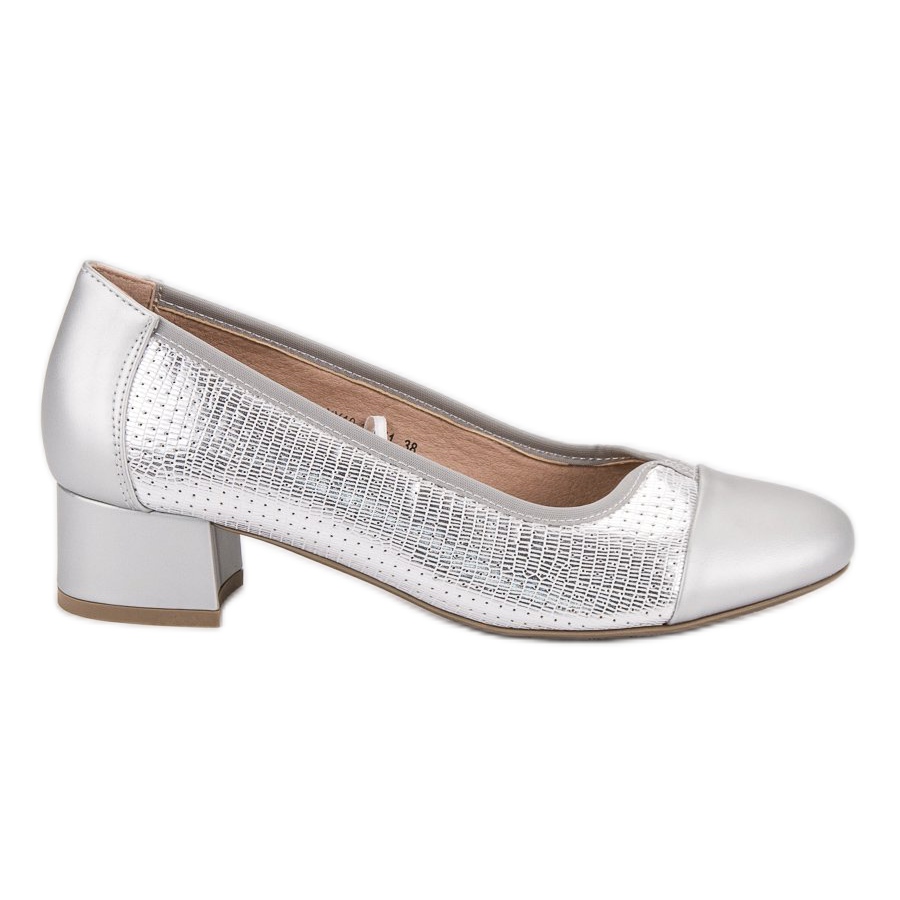 VINCEZA platta pumps i grått är en perfekt kombination av elegans och komfort som varje kvinna borde ha i sin kollektion. Dessa skor är gjorda av högkvalitativt naturligt läder och kännetecknas av en subtil silvernyans som ger dem en unik glans.