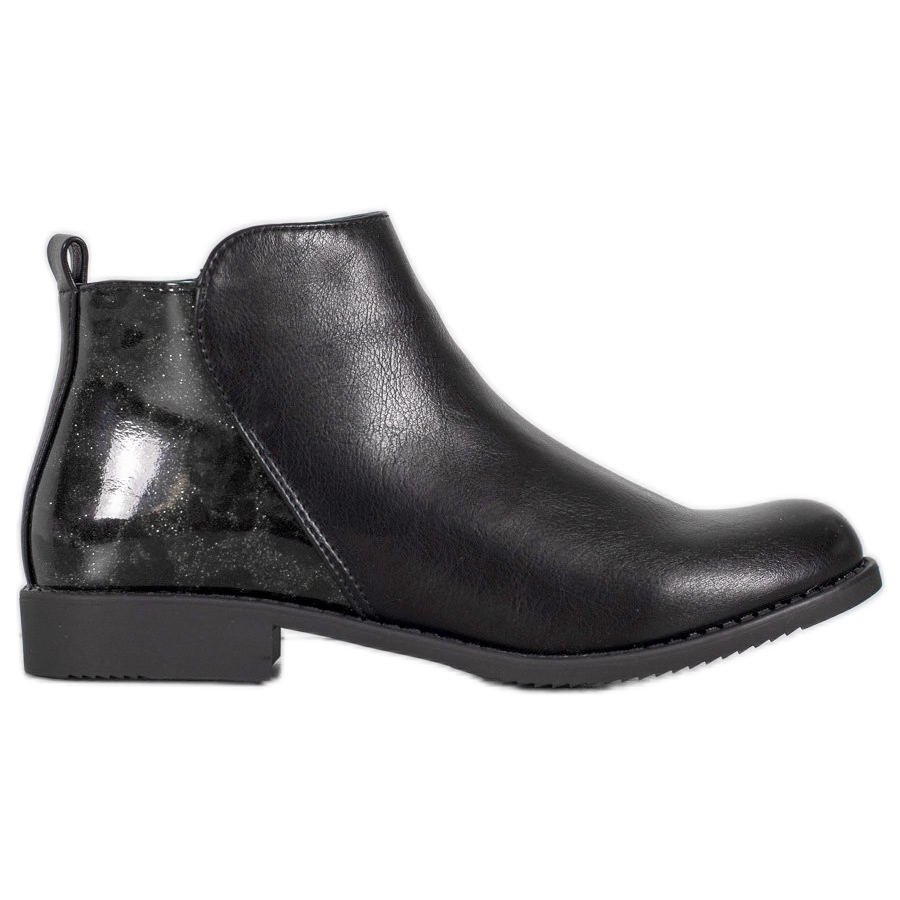 J. Star-stövlar kännetecknas också av utmärkt utförande - den syntetiska sulan är slät, vilket säkerställer komforten att bära, och den mjuka, inbyggda hälen stabiliserar foten. Invändig isolering garanterar värme under kallare dagar, och deras universella svarta färg gör att de matchar många vardagsstilar.
