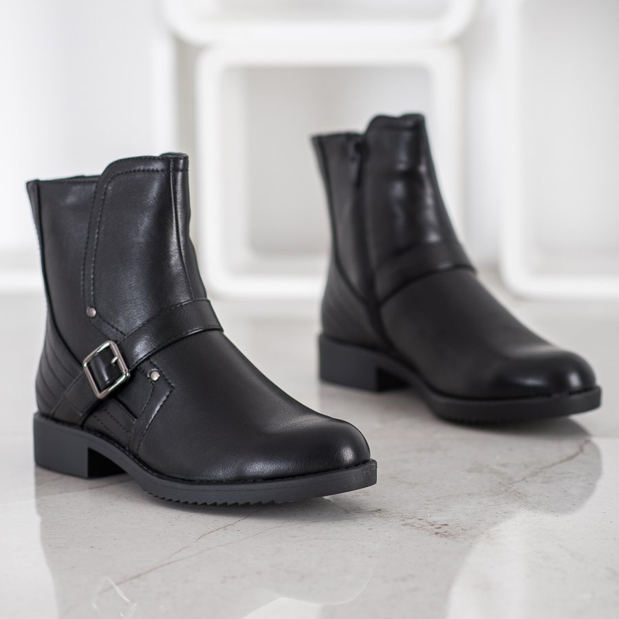 Den 3 cm höga platta hälen gör att gå i dem till ett sant nöje, även under längre promenader. Den ankellånga ovandelen är försedd med dragkedja på insidan, vilket gör det lättare att ta av och på skorna. En ytterligare fördel är ett dekorativt band med ett spänne, vilket ger skorna en moderiktig karaktär.