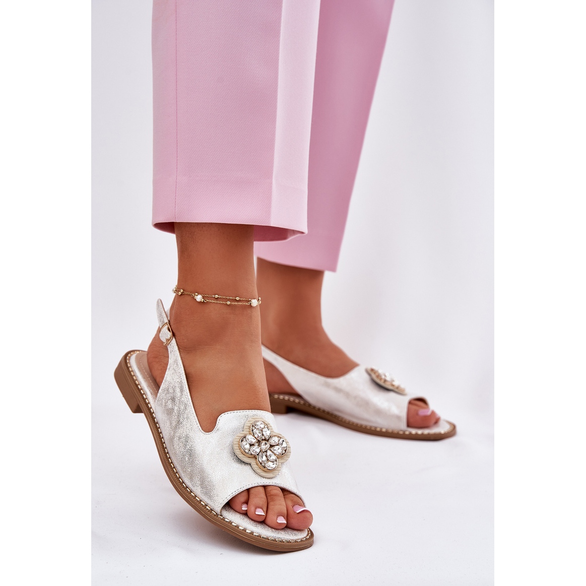 S.Barski Flat-klackade kvinnorsandaler med en dekorativ detalj S. Barski KV51-080 Silver