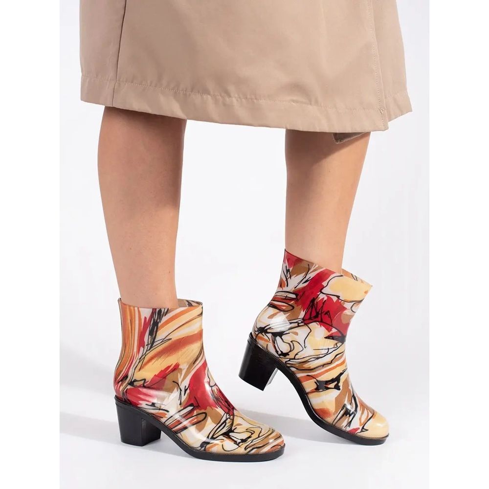 Detaljer: Flerfärgade gummistövlar med höga klackar mångfärgad