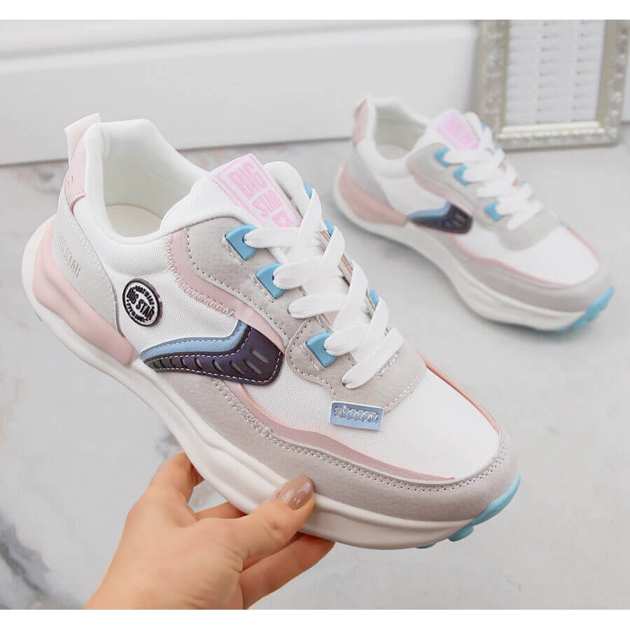 Multicolor Big Star KK274097 damsportskor är det perfekta valet för aktiva kvinnor som värdesätter både komfort och moderiktigt utseende. Extremt snygga och färgglada, dessa sneakers kännetecknas av en kombination av vitt, rosa, blått, marinblått och beige, vilket gör att de matchar många vår- och höststilar.