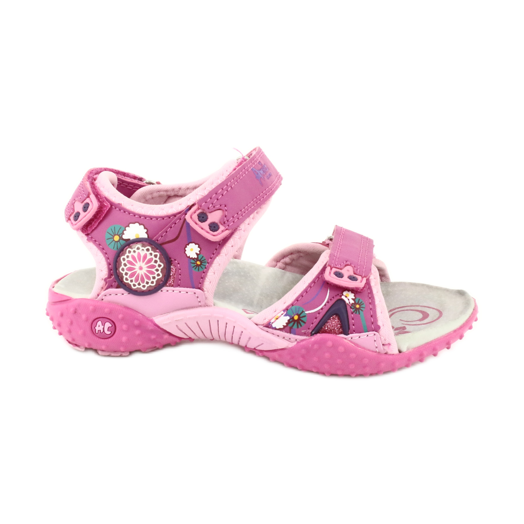 American Club 1232 flicksandaler är det perfekta valet för små sommar äventyrssökande. Tillverkade av högkvalitativt syntetiskt material, garanterar de hållbarhet och komfort under vardagliga aktiviteter. Deras unika, rosa och lila design drar till sig uppmärksamhet och lägger charm till varje styling.