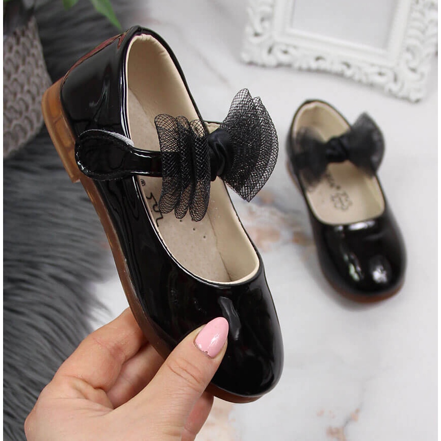 Detaljer: Flickballerinor med kardborre och rosett, svart Vinceza