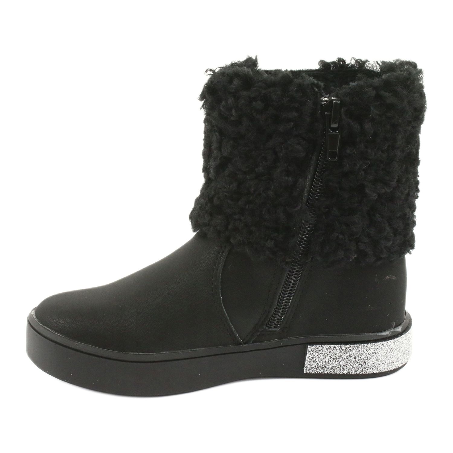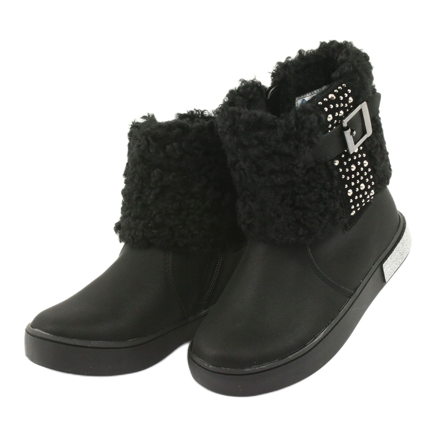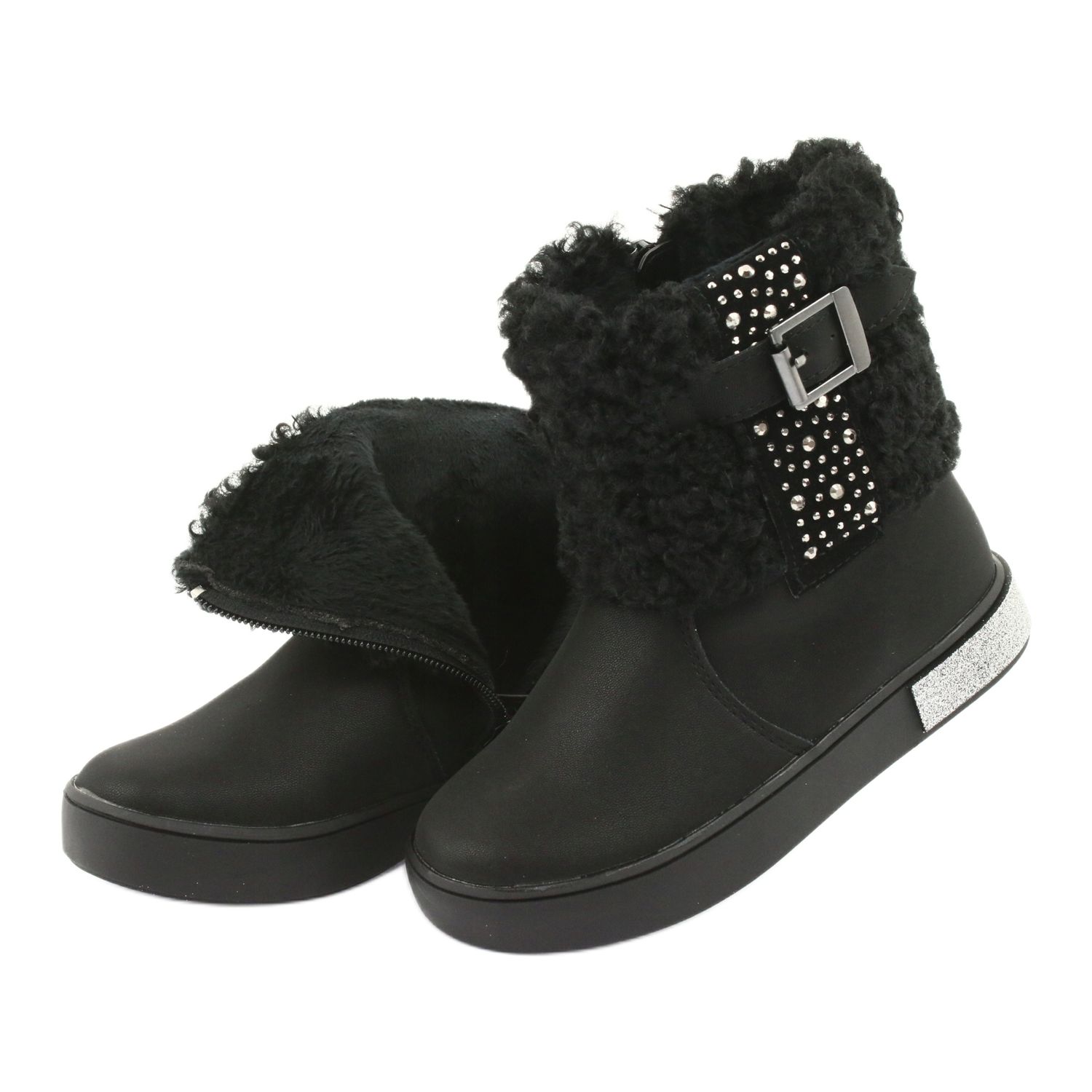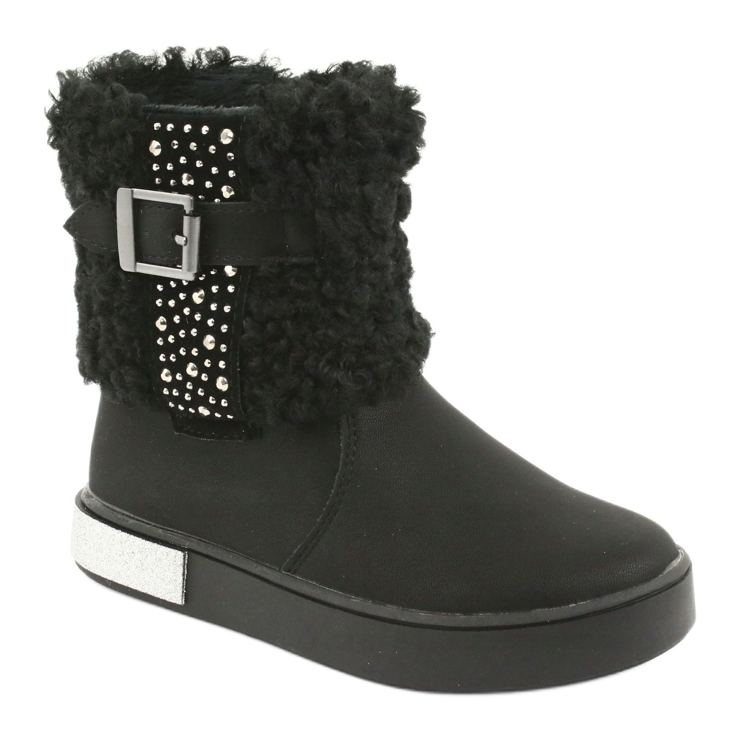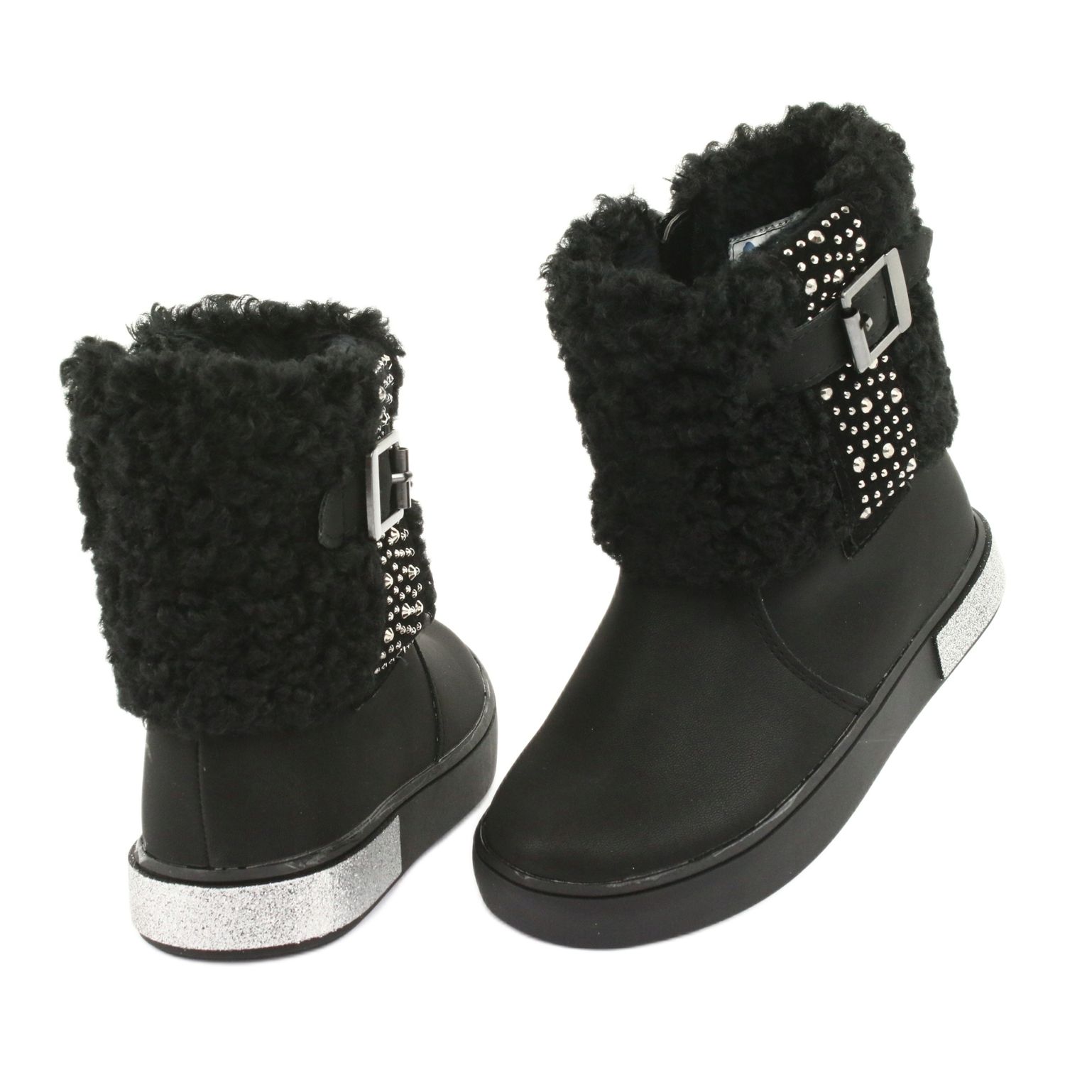 Snygga och varma stövlar som kommer att glädja varje litet mode. Toppen av ekologiskt läder som är färdig med glänsande paljetter ger charm och noggrant utförande garanterar hållbarhet och elegant utseende. Det övre inre är isolerat med en mjuk "nallebjörn" päls över hela höjden, vilket säkerställer komfort och skydd mot kylan. Kopplingsfästet gör det lättare att snabbt infoga och ta av dig skorna.