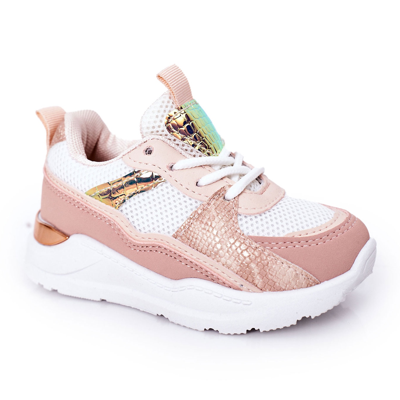 Snygga sneakers för flickor som kombinerar en trendig look med vardagens komfort. Den unika kombinationen av material ger skorna lätthet och originalkaraktär, och den mjuka materialets inåtsula bryr sig om bekvämlighet under rolig och heldag bär.