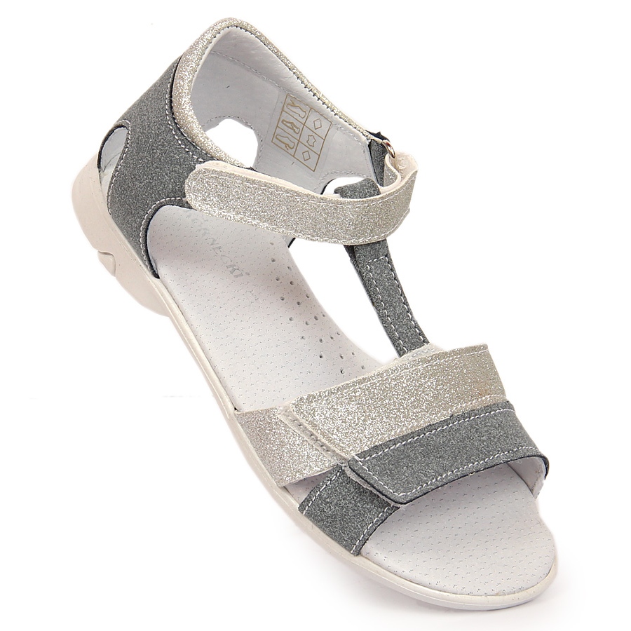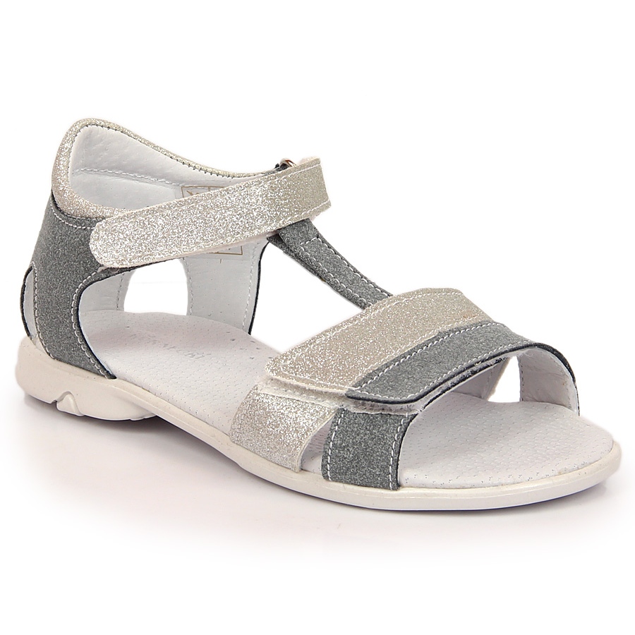 Detaljer: Flicksandaler med kardborre i silver Kornecki 6323 grå
