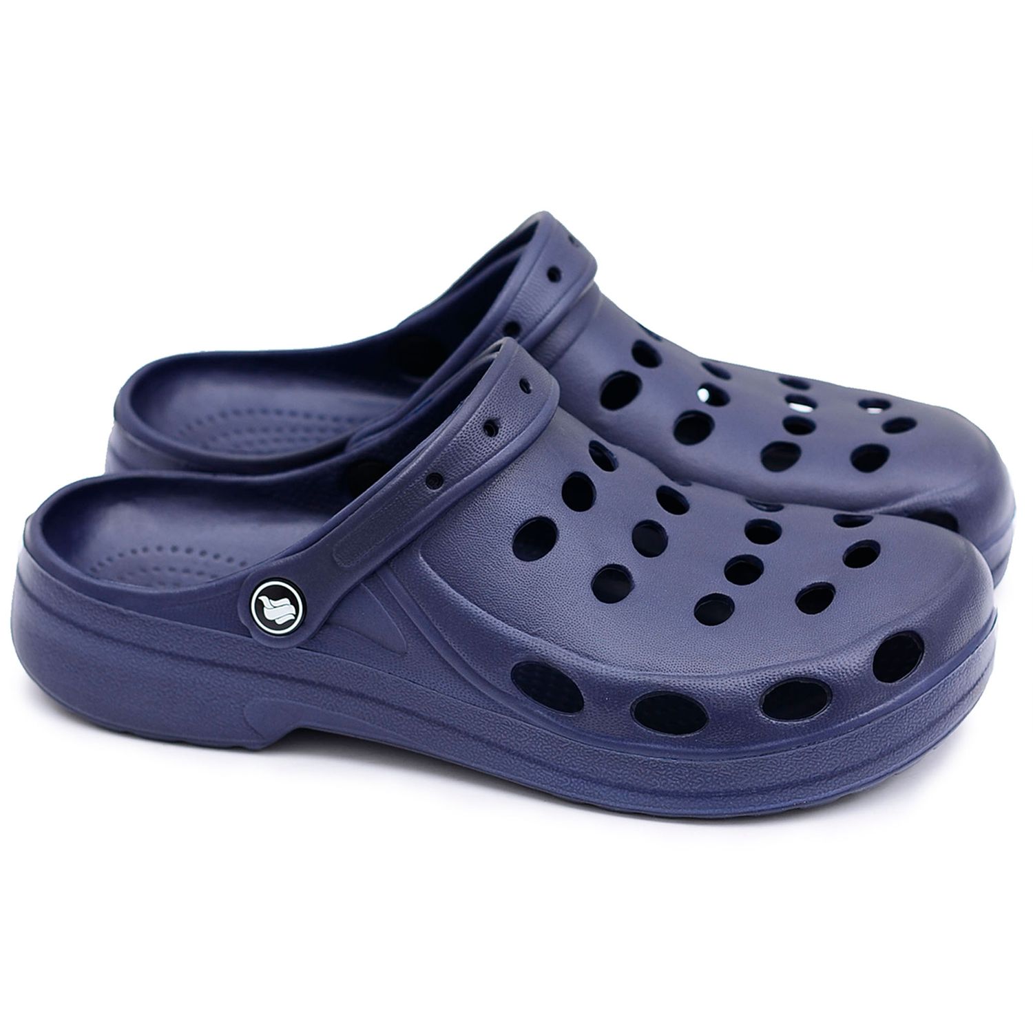 Gör dig redo för sommaren med bekväma och lätta skumflikar i en modern, marinblå nyans. Tillverkade av EVA -material och plast, de är perfekta för varma dagar - på stranden, vid poolen och varje dag.