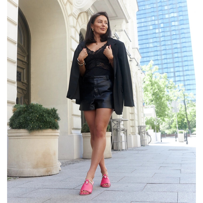 Upptäck de unika flip flops med Antari Leather Insula i en vacker rosa nyans av fuchsia, som perfekt matchar dina sommarstyliseringar. Dessa klassiska och moderna flip -flops har berikats med eleganta strass, vilket ger dem en lyxig karaktär och gör varje ögonblick tillbringade i dem unika.