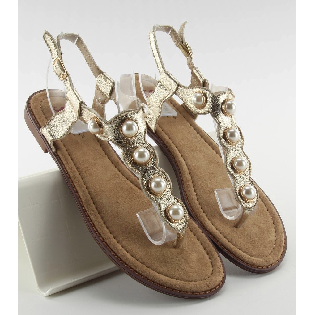 Inna marka Flipflops med stora pärlor LL-75 Guld gyllene