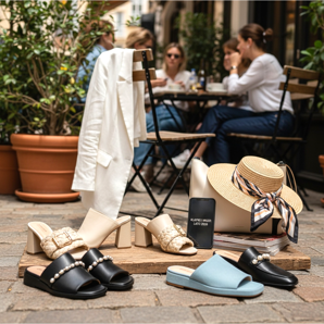 Flipflops och mulor - moderiktiga skor för hem och stad för sommaren 2026