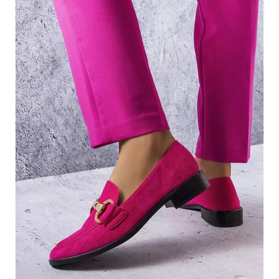 Deras dämpade Fushia-rosa färg och bruna gummisula gör mockasinerna perfekta för olika stilar – från avslappnad till mer elegant. Metalldekorationen tillför elegans, perfekt matchande aktuella modetrender. Mockasinerna har standardnumrering och finns i storlekar från 36 till 41, så välj din favoritstorlek utan rädsla.