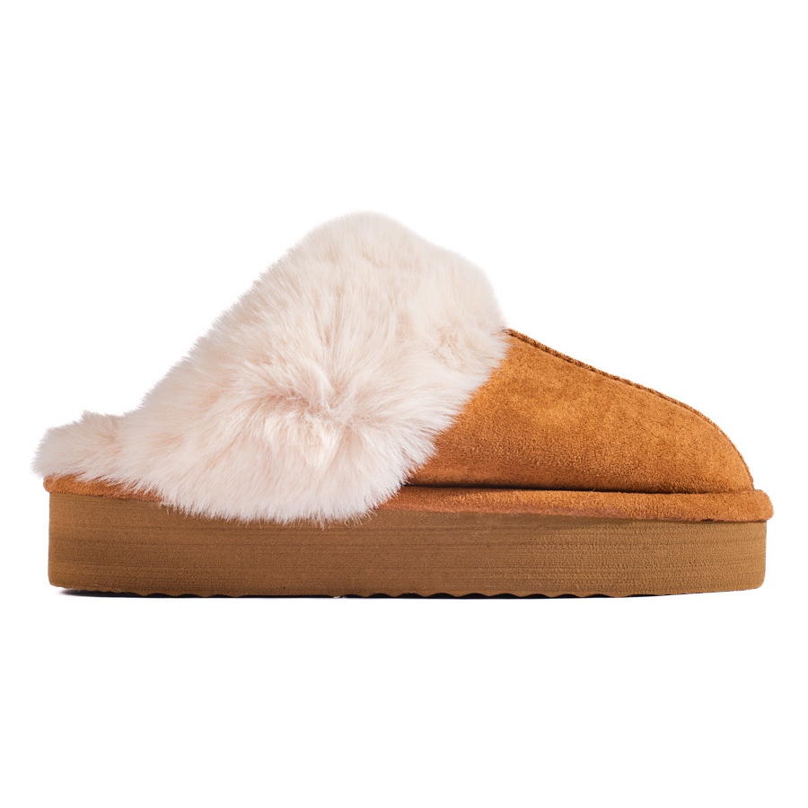 SHELOVET Fluffy Soft Platform Tofflor Camel Brown - Värme och stil i bekvämligheten av ditt hem