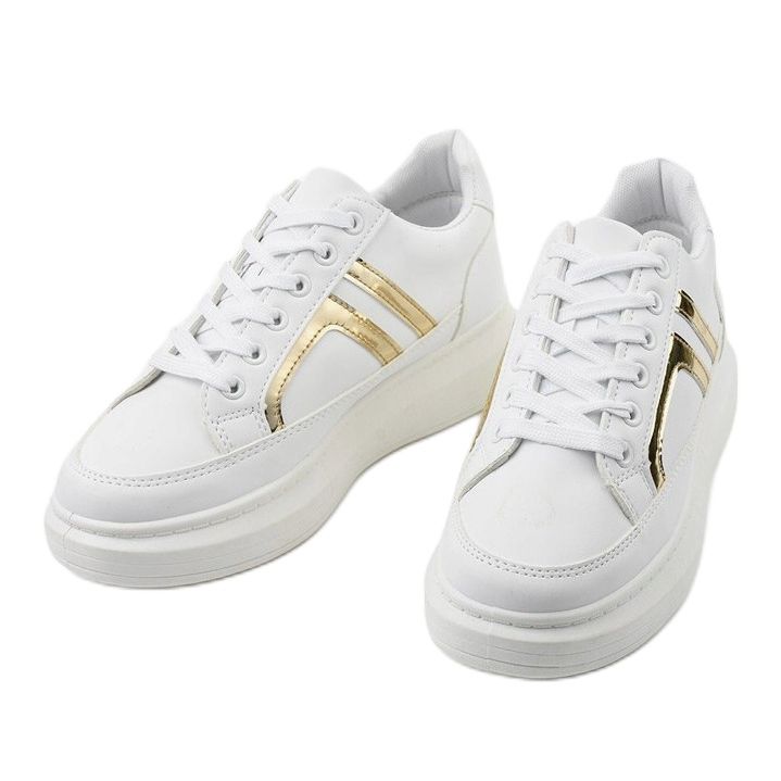 Den 5 cm höga plattformen tillför inte bara några centimeters höjd, utan också lätthet och dynamik i varje steg. Vita skor med subtila guldaccenter kommer säkert att locka uppmärksamhet och låta dig uttrycka din individuella stil.