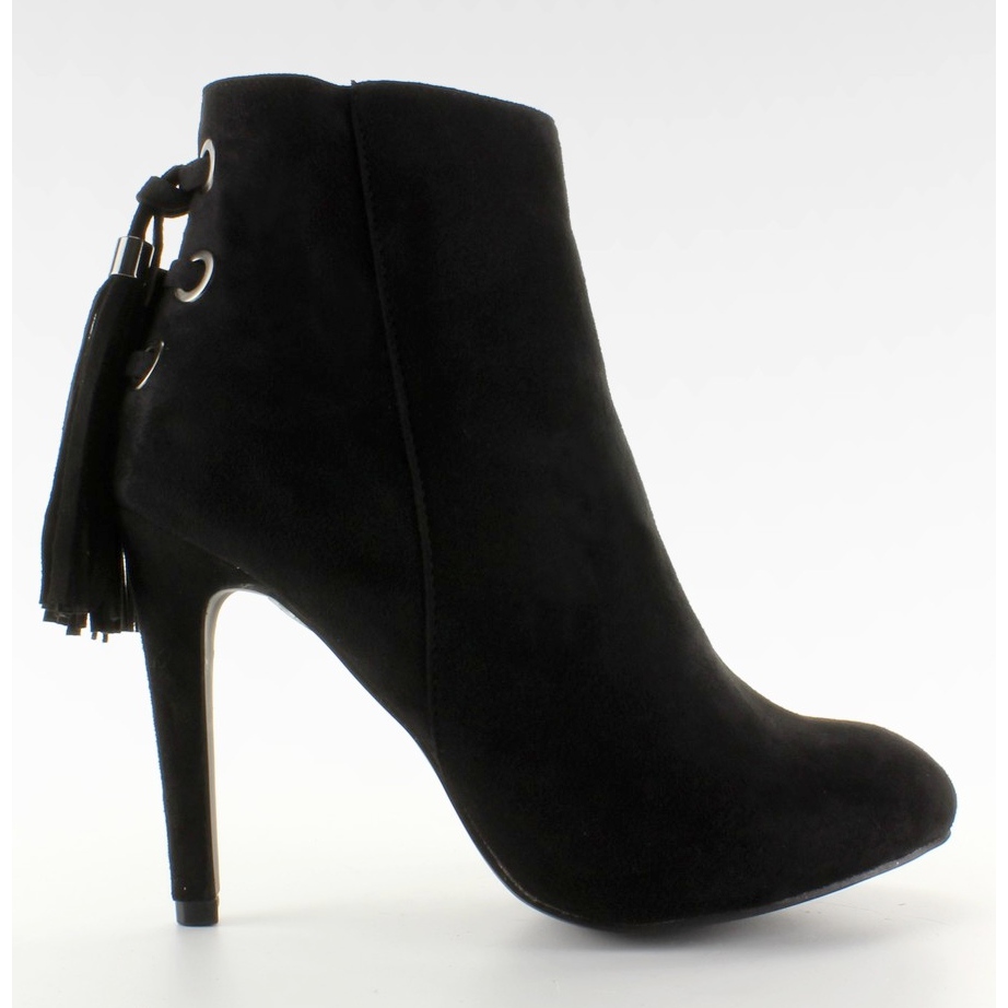 Högklackade ankelstövlar med fransar 66-217 Svart - elegans och chic i ett