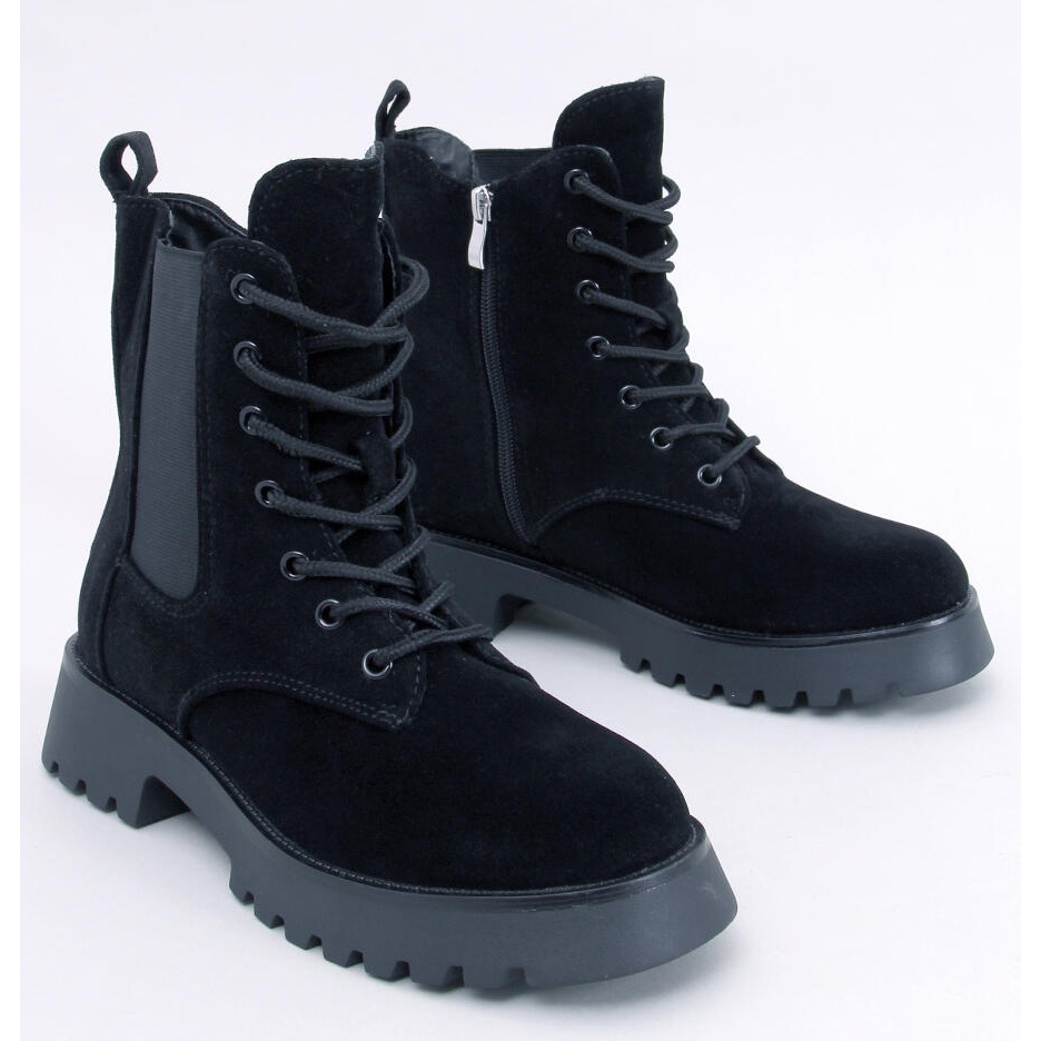 Franti Black Lace -up Checkers - Eleganta och praktiska stövlar som kommer att fungera i vardagliga och urbana stiliseringar. Svart ekologiskt mocka, delikat päls inuti och en stabil plattform ger dem en universell, fashionabla karaktär, samtidigt som man säkerställer komfort.