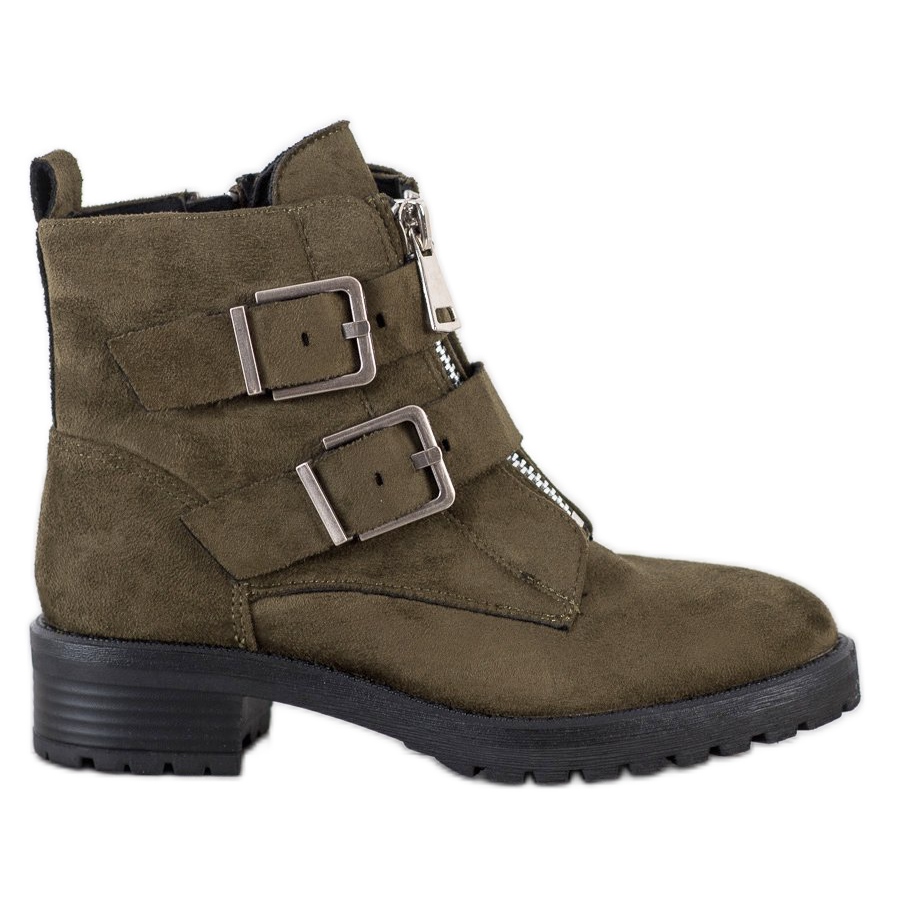 Upptäck originalitet och komfort i de unika khakigröna arbetarna från Corina. Dessa unika skor är den perfekta lösningen för kvinnor som vill lägga till en militär accent till sin vardagliga stil. De kännetecknas inte bara av en unik design, utan också av funktionalitet, tack vare en centralt placerad dragkedja och dekorativa spännen som väcker uppmärksamhet.