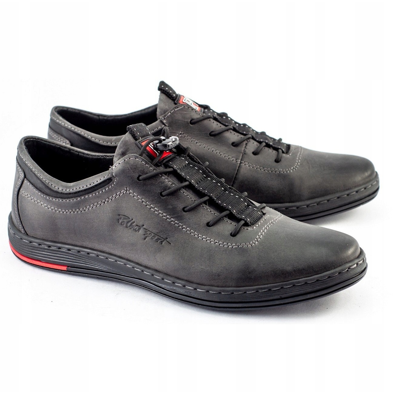 Polbut presenterar K23-läderskor för män i en elegant grå nyans, som kombinerar komfort med en modern avslappnad stil. Dessa slip-on skor kännetecknas av ett innovativt snörningssystem med ett elastiskt band, vilket gör dem lättare att ta på och perfekt anpassar sig till fotens form och vristens höjd, vilket säkerställer maximal vardagskomfort.