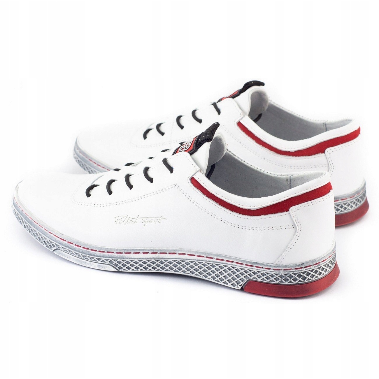 Upptäck den perfekta kombinationen av stil och komfort med läderskor K23 för män från Polbut. Dessa unika vita skor med röda accenter är det perfekta vardagsvalet som kommer att lägga originalitet till varje styling. Tack vare slip-on-designen med elastisk snörning är det extremt enkelt att ta på dem, och materialets elasticitet möjliggör enkel anpassning till fotens form och vristens höjd.