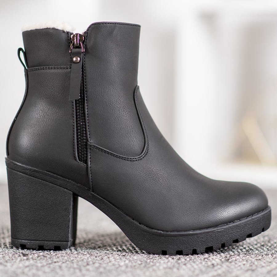 Stövlarna har en inbyggd och förstyvad häl, vilket säkerställer stabilitet och komfort att bära. Den runda tån ger dem ett klassiskt utseende, och den dekorativa dragkedjan gör dem inte bara praktiska, utan också moderiktiga. Dessutom ger sulan med slitbana i plast bra grepp vilket ökar säkerheten på olika underlag.